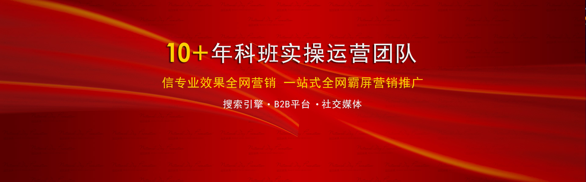 100+專業技術牛人,至少10年以上實戰經驗,豐富的網絡資源,量身定制不同的解決方案,解決您的營銷推廣難題。